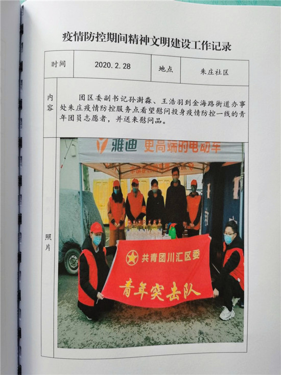 規(guī)范統(tǒng)一。朱莊社區(qū)創(chuàng)文檔案資料主要包括疫情防控、綜合文化服務(wù)、志愿者服務(wù)、黨員教育、普法教育等內(nèi)容,共12本。在格式方面,對字體、字號、圖片排版、數(shù)字和標(biāo)點符號使用等進行規(guī)范,做到風(fēng)格統(tǒng)一。在活動記錄方面,分為活動方案制定、活動圖片、活動小結(jié)等內(nèi)容,按照統(tǒng)一格式匯總整理,手寫記錄與彩色照片搭配,使活動記錄清楚、生動、明了。在資料裝訂方面,采用統(tǒng)一封面活頁裝訂。