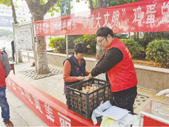 原來(lái)這是川匯區(qū)陳州辦事處在五一廣場(chǎng)舉辦的“撿起小煙頭 傳播大文明”煙頭換雞蛋活動(dòng)。該辦事處工作人員表示:“五一廣場(chǎng)周邊人流量大,亂丟煙頭現(xiàn)象嚴(yán)重,治理困難,我們很苦惱,于是想出了這個(gè)煙頭換雞蛋的妙招,居民可以拿20個(gè)煙頭換一個(gè)雞蛋?;顒?dòng)的目的就是發(fā)動(dòng)一批人撿拾煙頭,影響帶動(dòng)周邊的人,讓更多的人參與撿煙頭,讓吸煙的人不好意思丟煙頭,增強(qiáng)市民的環(huán)保意識(shí)和文明意識(shí)?!?/p>