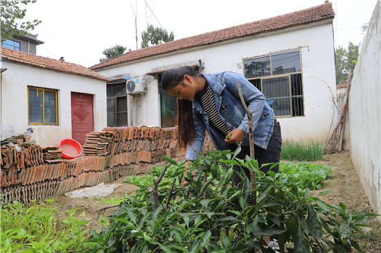 同是瓜趙村危房改造戶,19歲的趙明明正在院里灑水、摘菜,小院不大,東部菜園、西部通道,井井有條,油麥菜、菠菜、小青菜、辣椒、蔥、香菜、空心菜、梅豆角……五彩蔬菜給這個農家小院平添了幾分溫馨和生機。