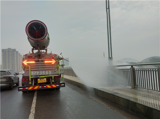 10月20日早晨,記者在周口中心城區(qū)周口大道橋上看到,工作人員正在大橋上清洗護欄及周邊路面,給路過行人創(chuàng)造一個潔凈的良好環(huán)境,也為正在進行“創(chuàng)文”工作,貢獻一份力量。 記者 張洪濤 攝