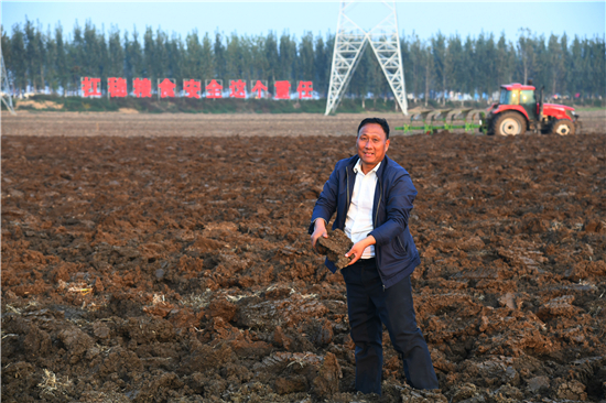 10月20日,周口市天華合作社理事長劉天華在察看土地深耕效果。