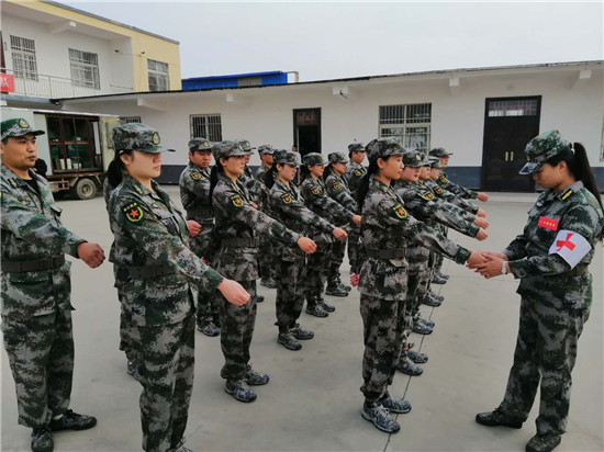 淮陽區(qū)人武部部長李保祥說,女基干民兵醫(yī)療救護專業(yè)分隊的20名專業(yè)隊員,在淮陽區(qū)民兵訓(xùn)練基地摸爬滾打的訓(xùn)練,她們斗志昂揚、精神抖擻,展現(xiàn)出了新時期女基干民兵沖鋒在前、勇于擔(dān)當(dāng)、能打善戰(zhàn)的精神風(fēng)貌。她們在訓(xùn)練場上是訓(xùn)練尖子,上了戰(zhàn)場便是優(yōu)秀的醫(yī)療救護專業(yè)戰(zhàn)士。