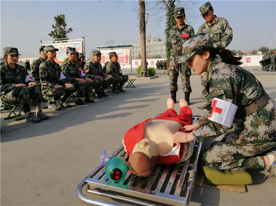 “稍息,立正,齊步走!”10月下旬,在淮陽區(qū)基干民兵軍事訓(xùn)練場上,活躍著一支醫(yī)療救護專業(yè)分隊,這支由20名醫(yī)院護士組成的基干民兵隊伍,她們英姿颯爽,意氣風(fēng)發(fā)。在隊列、射擊、投彈、包扎、盾牌操等多個軍事科目中,樣樣名列前茅,她們用拿著注射器針管的手,扛起了鋼槍,舉起了盾牌,樹立起了女基干民兵軍事訓(xùn)練的好樣子。