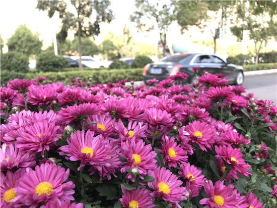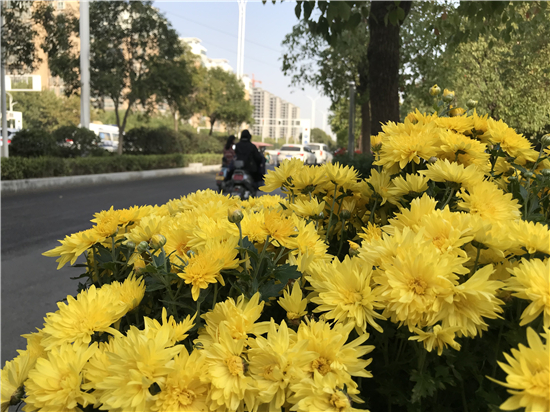 10月23日,霜降時節(jié),百花早已在寒風(fēng)中凋零,而菊花卻傲骨迎風(fēng)怒放。在周口大道與慶豐東路交叉口,朵朵菊花在陽光的照耀下,顯得清淡高雅、卓爾不凡,醉了清風(fēng)、迷了行人。②8