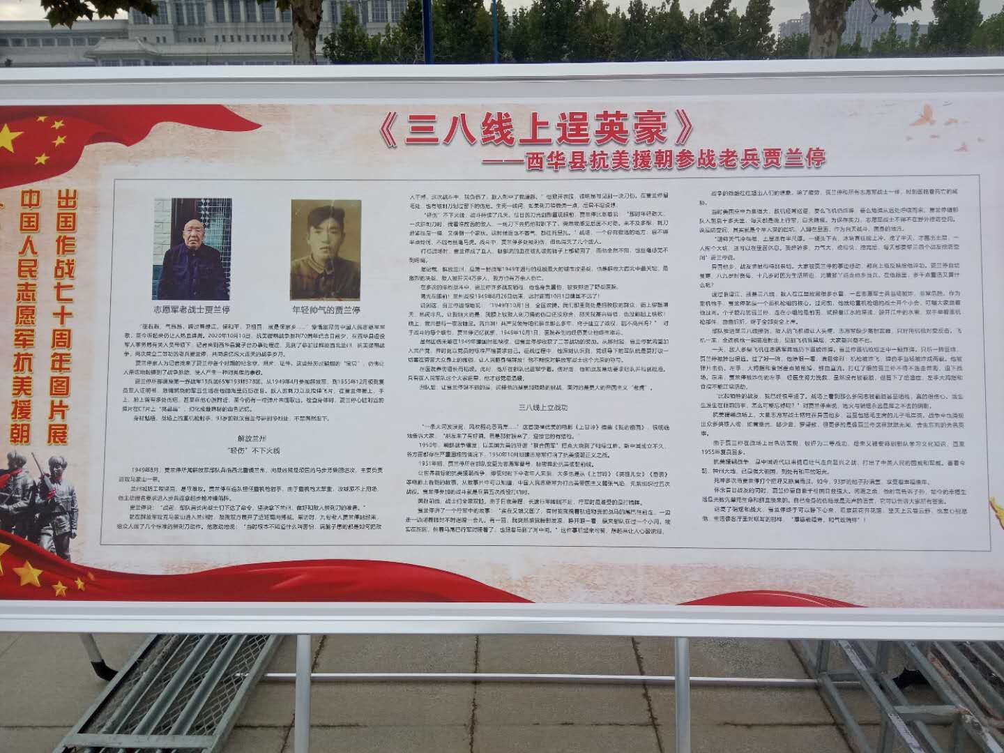 在《三八線上逞英豪,西華縣抗美援朝參戰(zhàn)老兵賈蘭?!酚⑿凼论E展板前,民兵們仔細地看了一遍又一遍,深受感動。“為了國家和民族,為了和平與正義,這位西華老戰(zhàn)士奔赴異域疆場,與強敵殊死較量,事跡可歌可泣,感人至深。我們要以這位本縣老鄉(xiāng)為榜樣,守初心、擔使命,繼承和發(fā)揚老一輩的革命精神、光榮傳統(tǒng)和優(yōu)良作風,進一步弘揚偉大的愛國主義精神,讓紅色基因代代相傳?!眮碜钥h公路局的基干民兵樊麗動情地說。