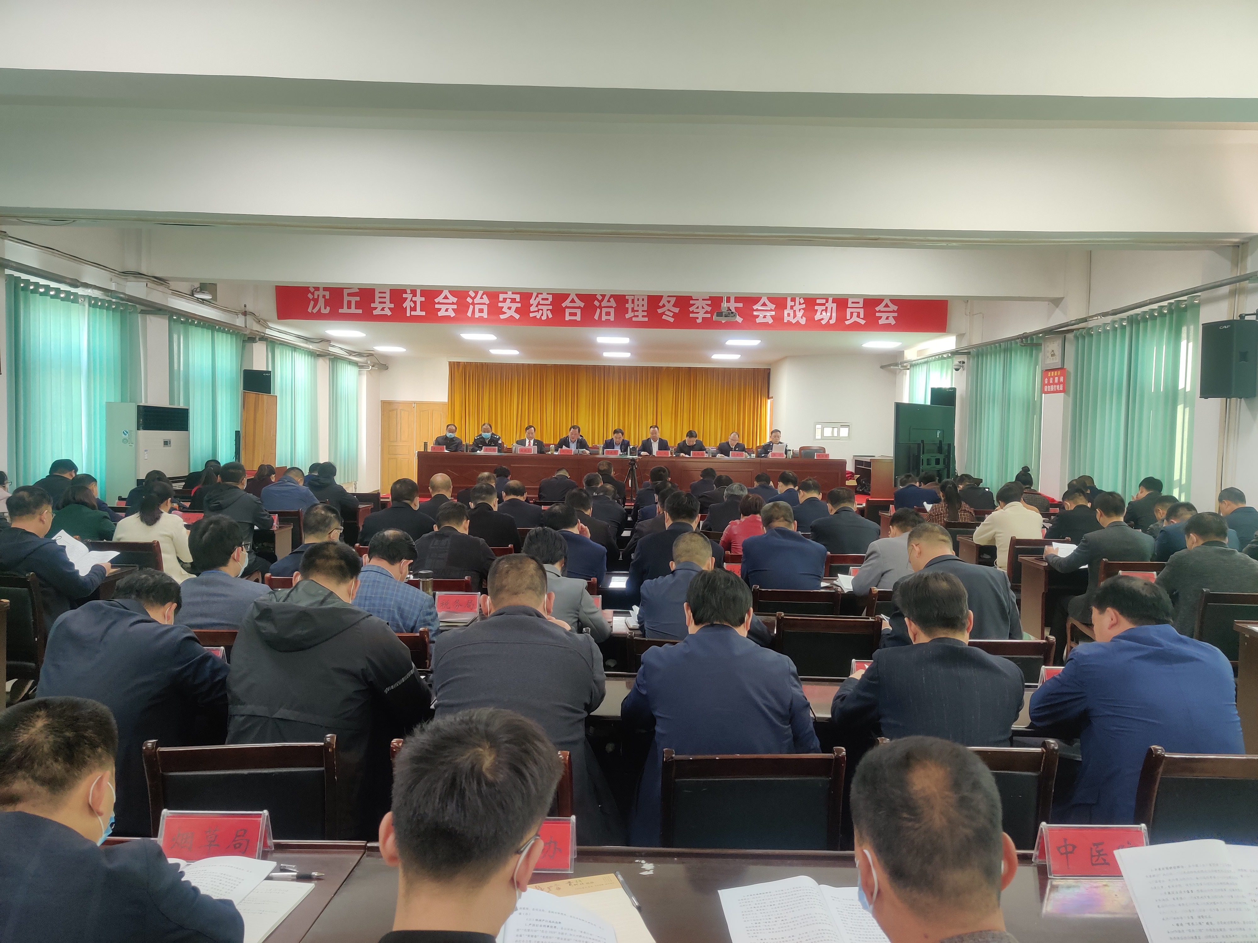 11月4日,沈丘縣組織召開社會治安綜合治理冬季大會戰(zhàn)動員會??h領導賈慶偉、段然、張銳、鹿槐生、趙振勇、李世龍、李恒新、張彥、李廣其出席會議??h直各單位及各鄉(xiāng)鎮(zhèn)(辦)主要負責人參加會議。會上,副縣長張銳宣讀了《沈丘社會治安綜合治理大會戰(zhàn)工作方案》。