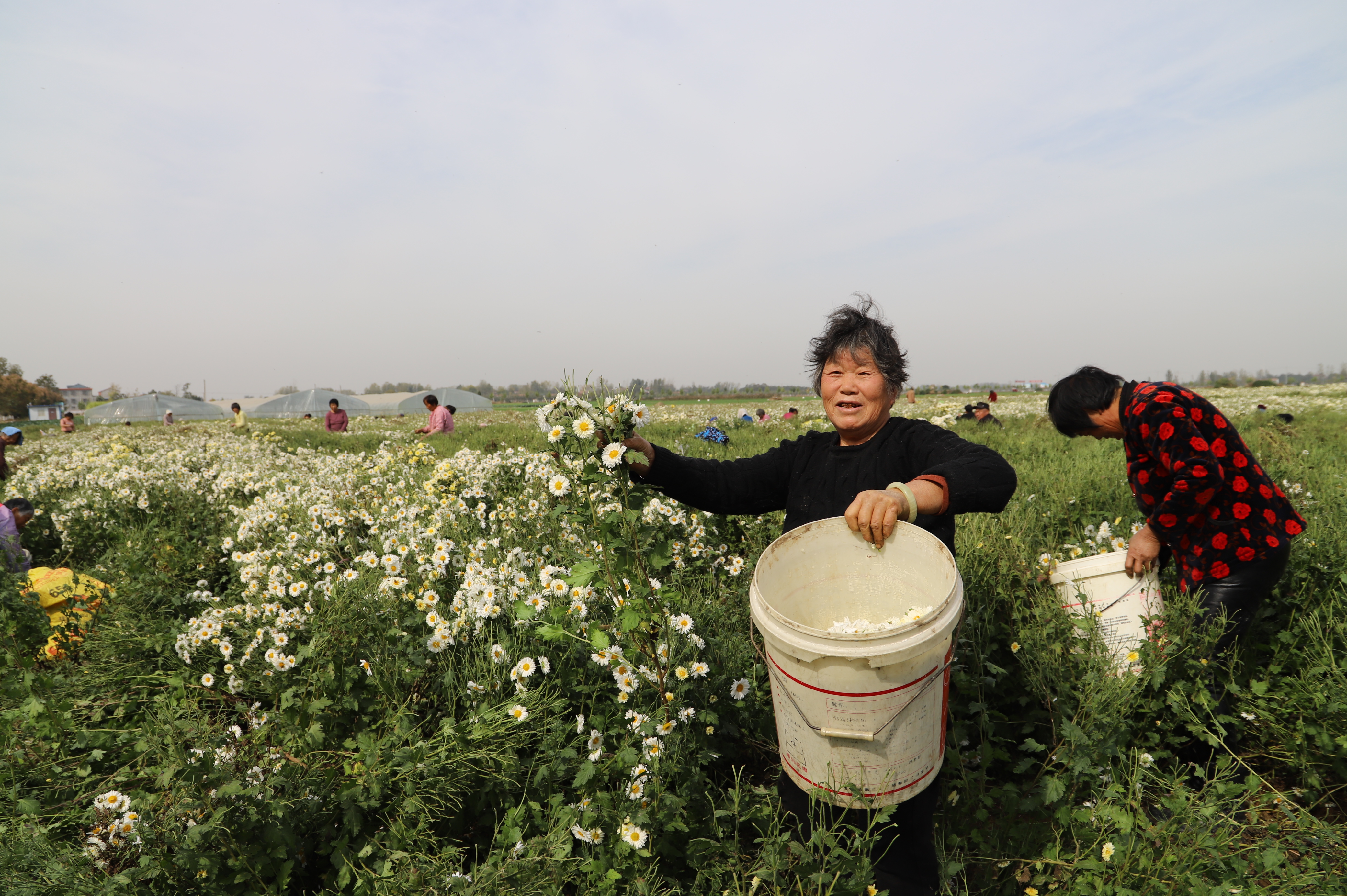 “這活兒輕,像摘棉花一樣,權當閑著沒事兒來玩兒了。我這年齡大了,不比他們年輕人,一天才掙五六十文兒?!?6歲的脫貧致富戶晉秀云來自晉老家行政村閆莊村,和老伴陳克平相依相伴。就這樣在村里打個零工,幫助種植合作社除草、施肥、摘花、澆水,再加上黨委政府的照顧,二人順利脫貧?!瓣P鍵是干這活兒甜蜜呀,聽說這菊花賣到外地都是有錢人泡茶喝的,俺這貧困戶能嘗到第一道鮮兒?!闭f著,晉秀云挑一朵開得艷的菊花放進口中,臉上露出了幸福的笑容。