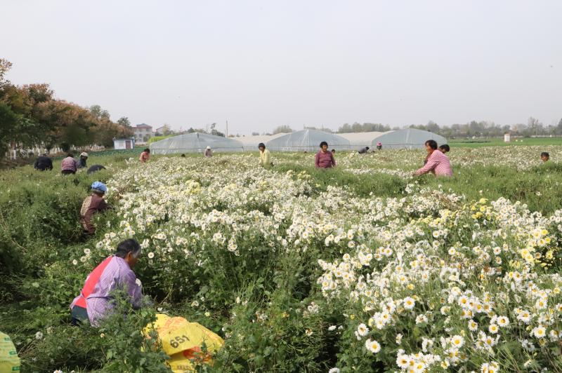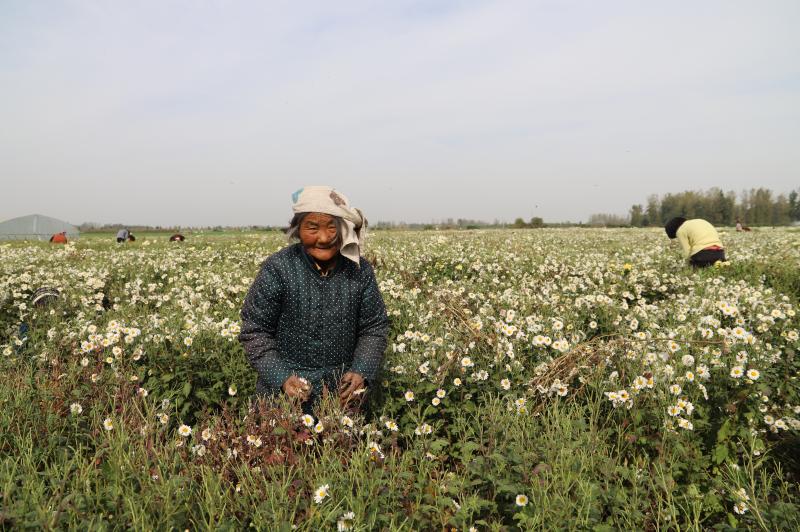 原來,菊花田的老板叫晉振中,于2018年從全縣脫貧攻堅種植信息渠道得知種菊花能致富,銷售的末端是安徽亳州的藥材市場和一些花茶商家。特別是種植方式和平原種植紅薯一樣,把田地打成壟,栽苗、施肥、澆水、除草,9月份采摘一次、11月份采摘一次,剩下的菊花秸稈粉碎到田間作為肥料,還能種植晚小麥,十分方便。于是,他通過鎮(zhèn)村兩級黨員干部協(xié)助流轉了100畝土地,2019年就掙了20多萬元。由于晉菜園村是貧困村,在他的菊花田務工的勞動力大多是貧困戶,能帶動近百戶貧困戶脫貧致富,晉振中欣慰地覺得自己為脫貧攻堅做了一份大貢獻。