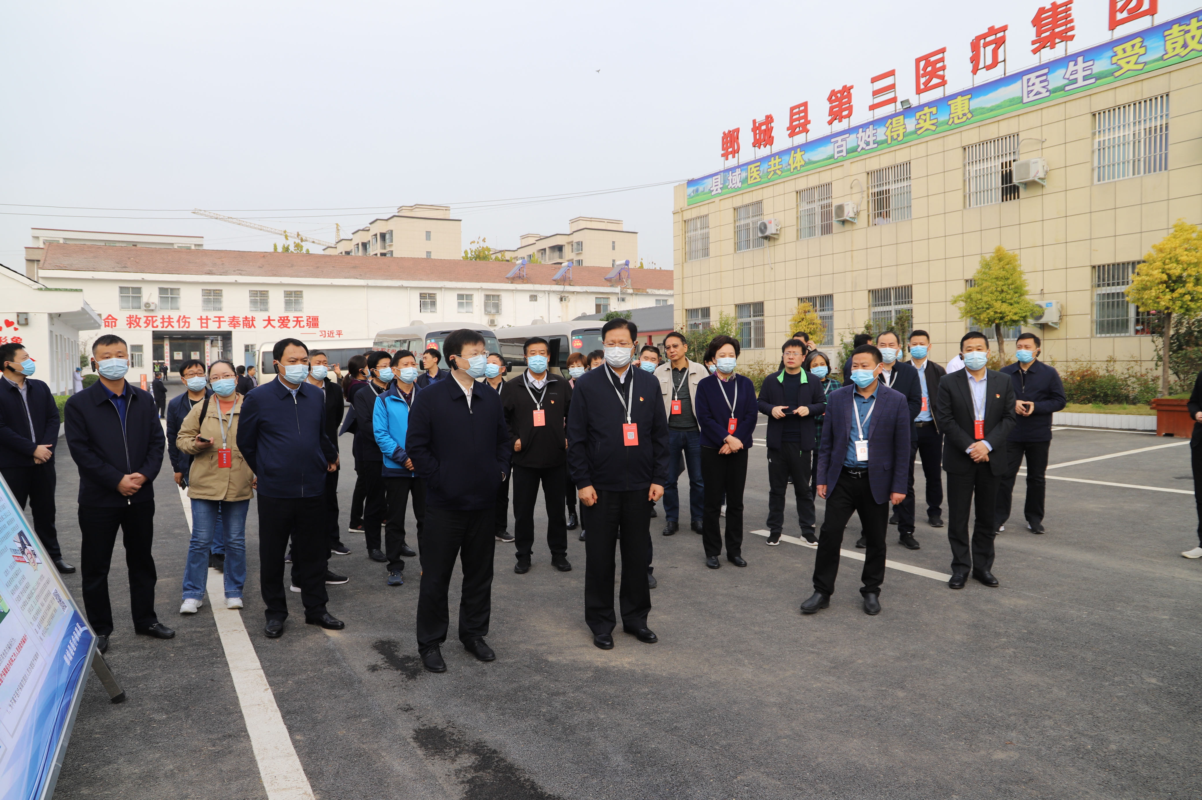 會(huì)議當(dāng)天,河南省衛(wèi)健委黨組成員、副主任王良啟,省紀(jì)委駐省衛(wèi)健委紀(jì)檢組長(zhǎng)、委黨組成員李剛,省扶貧辦黨組成員、副主任郭奎立,省醫(yī)保局黨組成員、副局長(zhǎng)王峻峰,帶領(lǐng)來(lái)自全省衛(wèi)健、扶貧、醫(yī)保及部分醫(yī)療機(jī)構(gòu)的參會(huì)人員,分組觀摩鄲城縣人民醫(yī)院、中醫(yī)院、第二人民醫(yī)院、婦幼保健院牽頭的四大醫(yī)健集團(tuán)縣、鄉(xiāng)、村三級(jí)醫(yī)共體建設(shè)及助力健康扶貧成效,大家一致點(diǎn)贊“鄲城經(jīng)驗(yàn)”。周口市人大常委會(huì)副主任、鄲城縣委書(shū)記羅文閣,副市長(zhǎng)馬劍平,鄲城縣長(zhǎng)李全林、縣人大常委會(huì)主任李建軍等參加現(xiàn)場(chǎng)會(huì)。