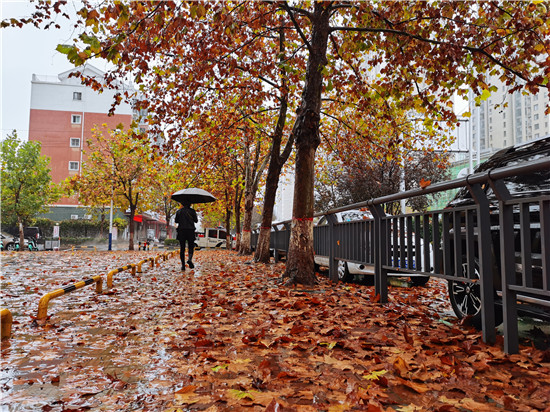 連日來,周口迎來立冬后的首場降雨,雨打落葉,滿地枯黃,雨中的街頭別有一番韻味。從17日起,周口會持續(xù)降雨,18日早上一場大雨后,氣溫明顯降低,出門的朋友可要做好保暖、帶好雨具。②9