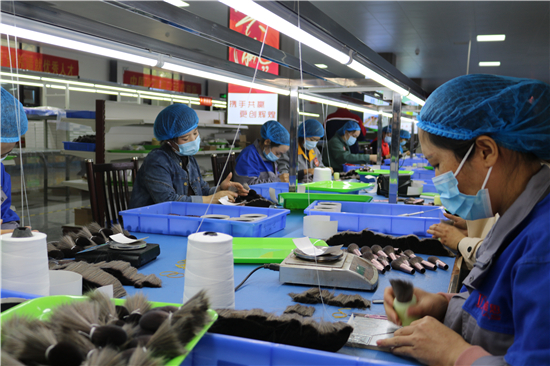 “從簡單的梳羊毛到如今做高檔化妝刷,從產(chǎn)業(yè)鏈的末端做到頂端,從養(yǎng)家糊口到賺外匯,經(jīng)過多年的滾動發(fā)展,鹿邑縣硬是把尾毛化妝刷這種‘小手藝’做成了助推縣域經(jīng)濟高質量發(fā)展的‘大產(chǎn)業(yè)’。目前,全縣大大小小的化妝刷企業(yè)達1000多家,尾毛出口總量占全國化妝刷原毛出口的80%,年產(chǎn)羊毛3000多噸、尼龍毛9000多噸,生產(chǎn)各類化妝刷1.5億套,產(chǎn)品遠銷20多個國家和地區(qū)。另外,作為尾毛的衍生產(chǎn)業(yè),羊毛衫加工產(chǎn)業(yè)近幾年的異軍突起,更是激活了全縣創(chuàng)業(yè)就業(yè)的一池春水。統(tǒng)計數(shù)字顯示,近幾年,鹿邑縣持續(xù)圍繞尾毛化妝刷特色產(chǎn)業(yè),強鏈延鏈補鏈,開展精準招商,化妝刷及配套企業(yè)已發(fā)展到135家,實現(xiàn)產(chǎn)值50多億元,出口創(chuàng)匯21億;羊毛衫紡織企業(yè)發(fā)展到54家,有電腦織機6500臺,年產(chǎn)各類針織服裝6000萬件,使鹿邑成為河南省最大的化妝刷生產(chǎn)基地、羊毛衫加工基地,帶動全縣7.5萬人創(chuàng)業(yè)就業(yè)。