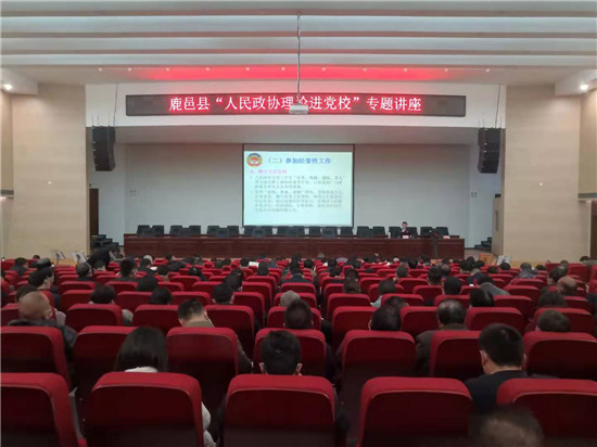 11月27日上午,河南省政協(xié)提案委員會辦公室主任劉俊江為鹿邑縣黨校2020年秋季科級干部意識形態(tài)工作專題研修班、青年干部培訓(xùn)班學(xué)員、縣政協(xié)常委、部分政協(xié)委員、政協(xié)機關(guān)干部共計360多人作了精彩生動的專題報告。