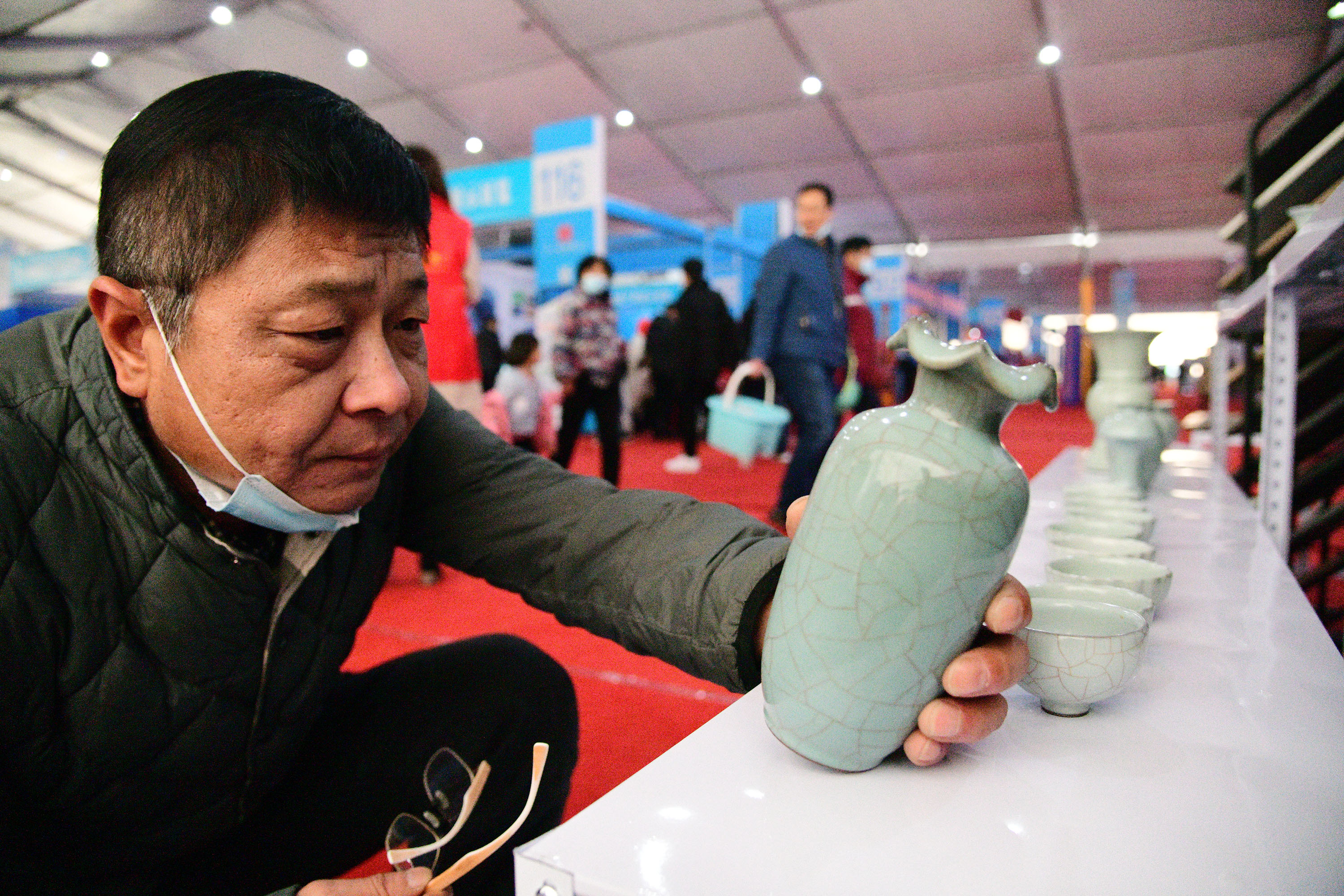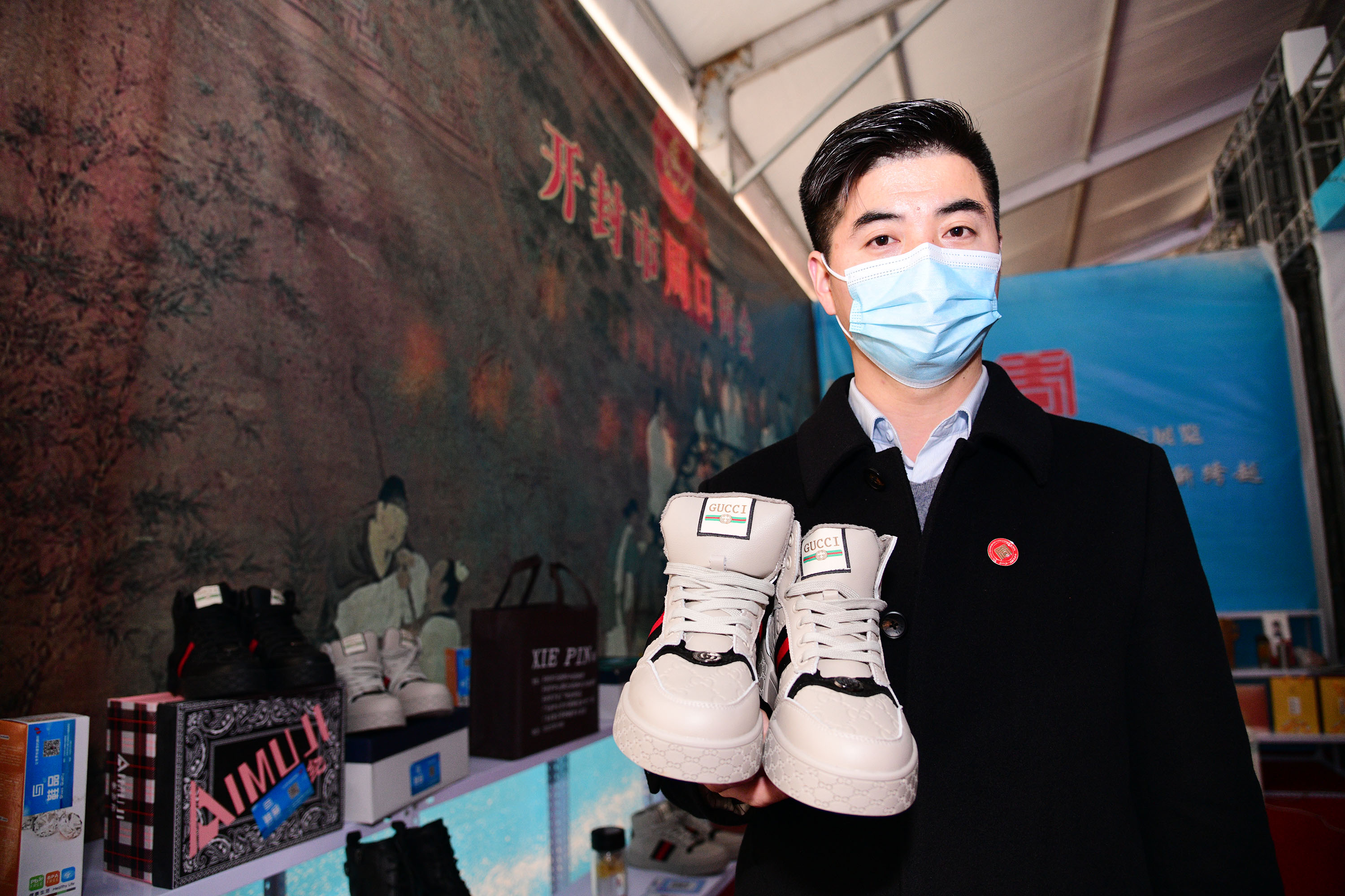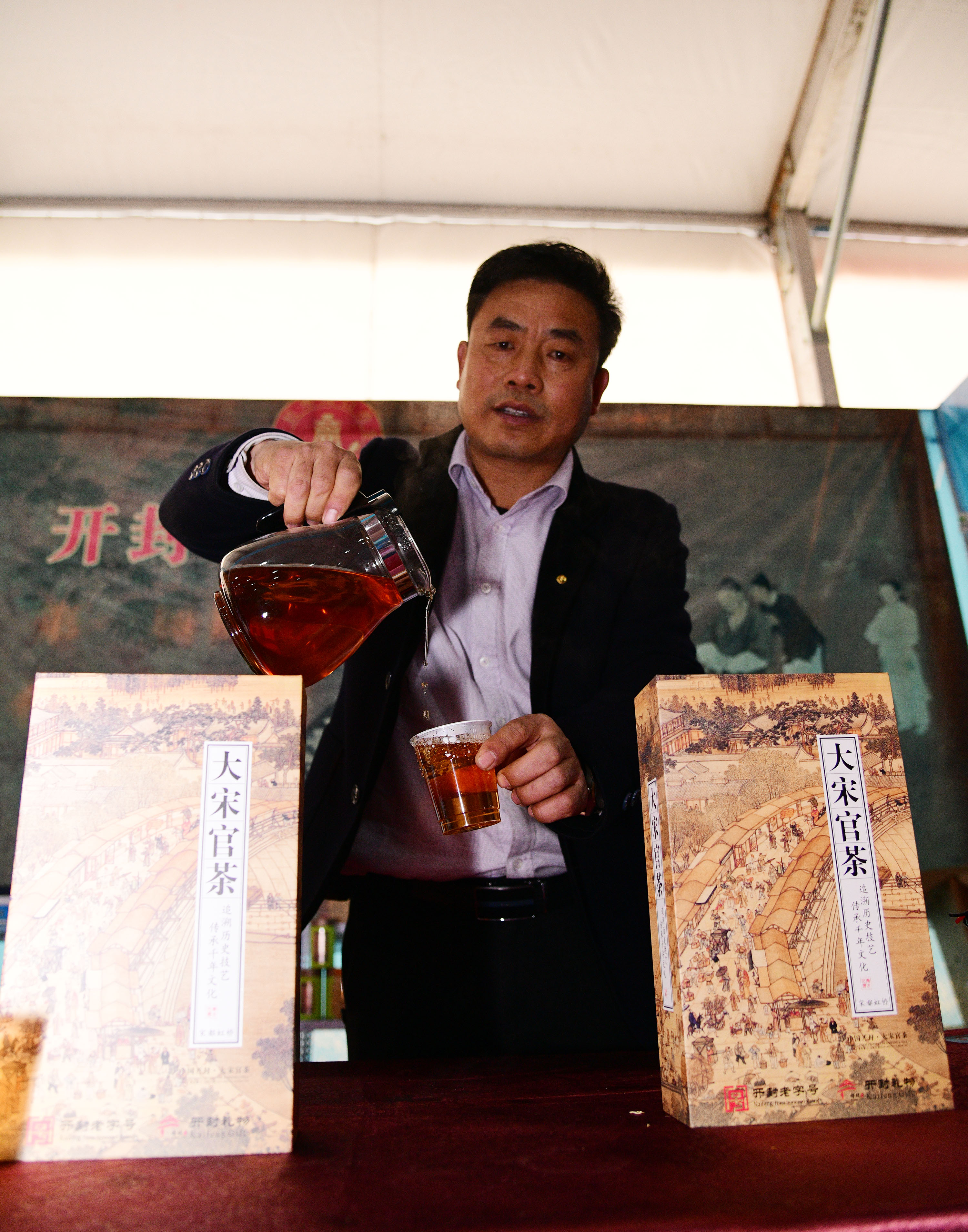 在展會上給顧客講述大宋官瓷品相的董俊,也是很厲害的周口企業(yè)家,能夠把開封老字號的官瓷,運營得風生水起,大宋官瓷瓷器和汴繡被譽為七朝古都象征性的物產(chǎn),還有大宋官茶,含有被譽為茶中黃金的“金花菌”,是“河南老字號”、“非物質(zhì)文化遺產(chǎn)”,也被選入“首屆開封禮物”。大宋官茶源于宋神宗(公元1068年),它今天的主人是淮陽區(qū)新站籍企業(yè)家牛華麗,這位淮陽籍漢子從小在開封長大,對大宋官茶獨有情種,現(xiàn)在是大宋官茶掌舵人,是大宋官茶非遺傳承人。而福興齋桶子雞老總馬勇是沈丘人,這是開封的名吃,去開封旅游,吃桶子雞和小籠包,成為游客必須品嘗的美味。馬勇參加周商大會帶回周口的桶子雞深受家鄉(xiāng)人的喜歡,一直熱賣。而“鞋品”鞋的老總侯建峰是鄲城人,他在廣州設(shè)有代加工廠,鞋子以河南為主要市場,在開封城由五個專賣店,同時也銷往全國。