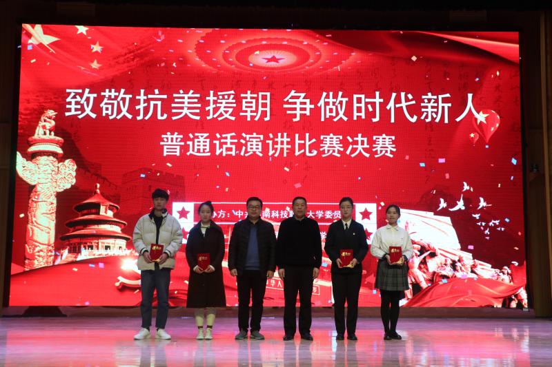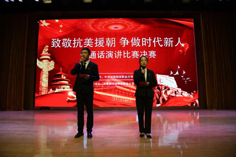 為銘記歷史、緬懷先烈、增強(qiáng)愛國(guó)主義精神,培養(yǎng)新時(shí)代大學(xué)生的責(zé)任與擔(dān)當(dāng)意識(shí)。12月1日晚,河南科技職業(yè)大學(xué)舉辦“致敬抗美援朝,爭(zhēng)做時(shí)代新人”普通話演講比賽。