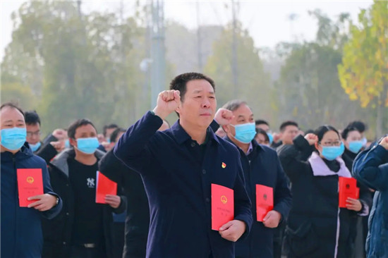 12月3日,莊嚴(yán)的宣誓聲,回響在市城鄉(xiāng)一體化示范區(qū)招商大廈院內(nèi)。示范區(qū)全體干部職工手持憲法,高舉右手,在國旗下向憲法莊嚴(yán)宣誓。區(qū)黨工委書記閆立超及全體班子成員出席宣誓活動(dòng),示范區(qū)全體干部職工參加宣誓活動(dòng)。