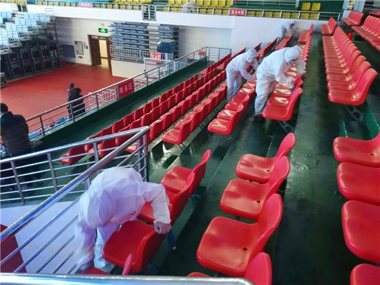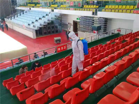 為確保疫情防控工作,保障第一屆周商大會(huì)順利進(jìn)行,11月26日至27日,30余名工作人員對市體育館內(nèi)外、周商產(chǎn)品展示展覽區(qū)進(jìn)行全面消毒殺菌,包括座椅,走廊,欄桿,門把手等,確保周商大會(huì)消殺工作不留死角。周口日報(bào)·周道客戶端見習(xí)記者 喬小納 攝