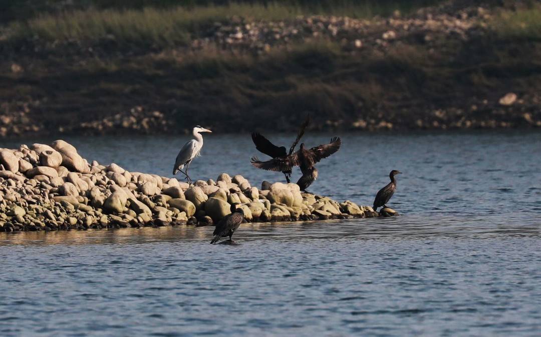 枯水期長(zhǎng)江宜都段灘涂成鳥(niǎo)類樂(lè)園。