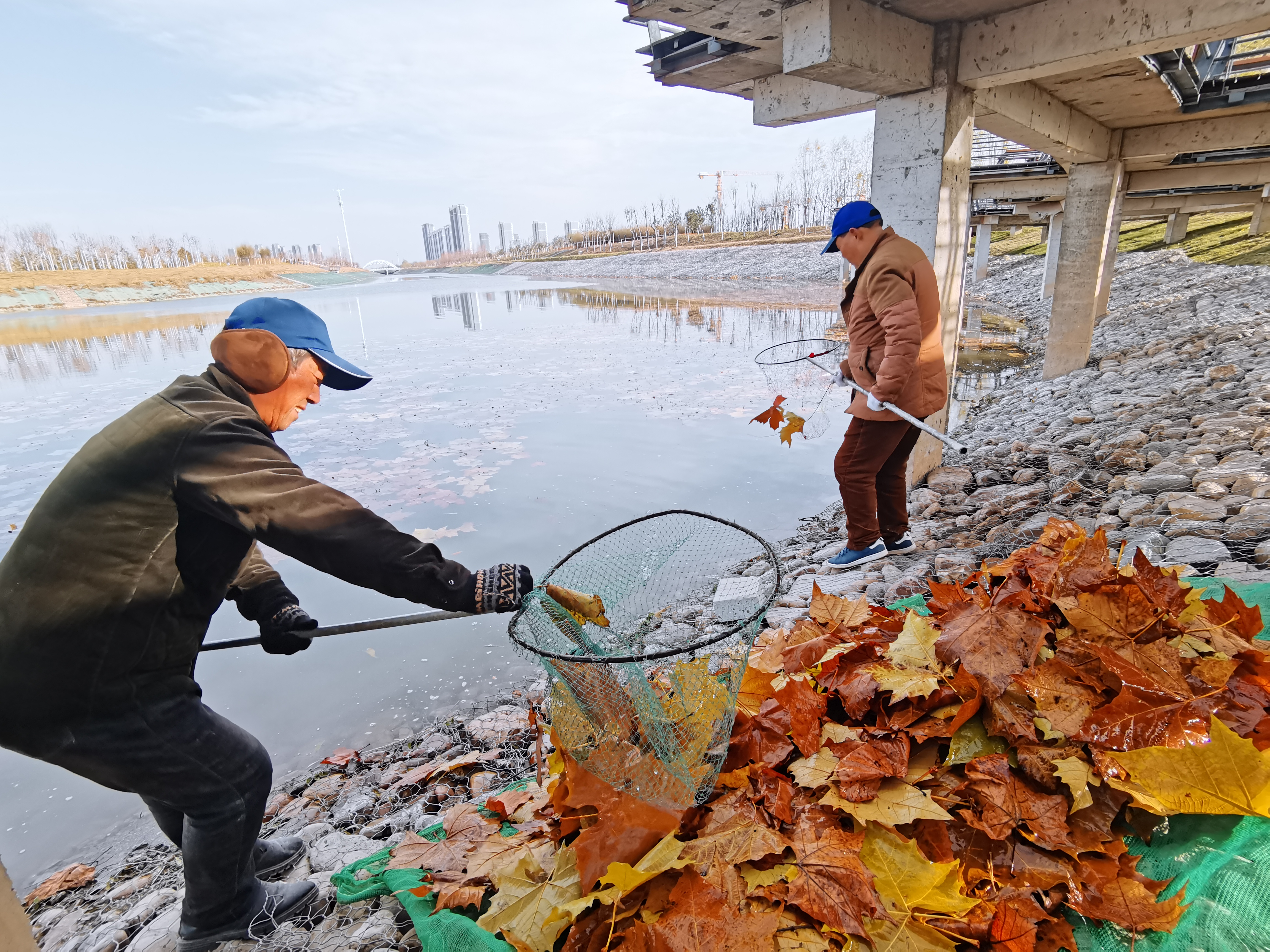 12月14日,環(huán)衛(wèi)工人在清理沙潁河水面上的枯樹葉等垃圾。最近,我市氣溫下降,枯樹葉紛紛落下,為了保持市區(qū)街道的干凈整潔,環(huán)衛(wèi)工人需要不斷地進(jìn)行清掃,任務(wù)十分艱巨。為防止清掃好的樹葉被風(fēng)刮走,環(huán)衛(wèi)部門專門為環(huán)衛(wèi)工人配血封閉式三輪車、大號(hào)編織袋,盛放枯葉,最后樹葉由環(huán)衛(wèi)工人送往垃圾中轉(zhuǎn)站統(tǒng)一處理。