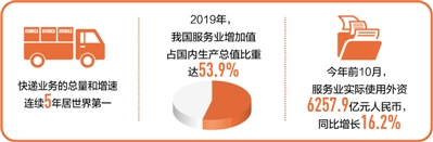 快遞業(yè)務(wù)的總量和增速連續(xù)5年居世界第一,電子商務(wù)和移動支付交易額居世界第一……“十三五”以來,我國服務(wù)業(yè)規(guī)模日益壯大,質(zhì)量效益大幅提升,新業(yè)態(tài)新模式快速涌現(xiàn)。