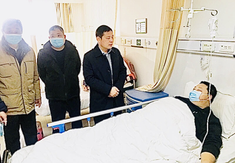 在醫(yī)院病房,陳鳳祥詳細(xì)了解朱樂樂的病情和治療情況,詢問其家庭情況和生活狀況,表達(dá)了公安局黨委非常重視民警、輔警身體健康情況的心情,并送上慰問金。同時,叮囑朱樂樂要保持樂觀心態(tài),安心養(yǎng)病,爭取早日康復(fù),回到工作隊伍。