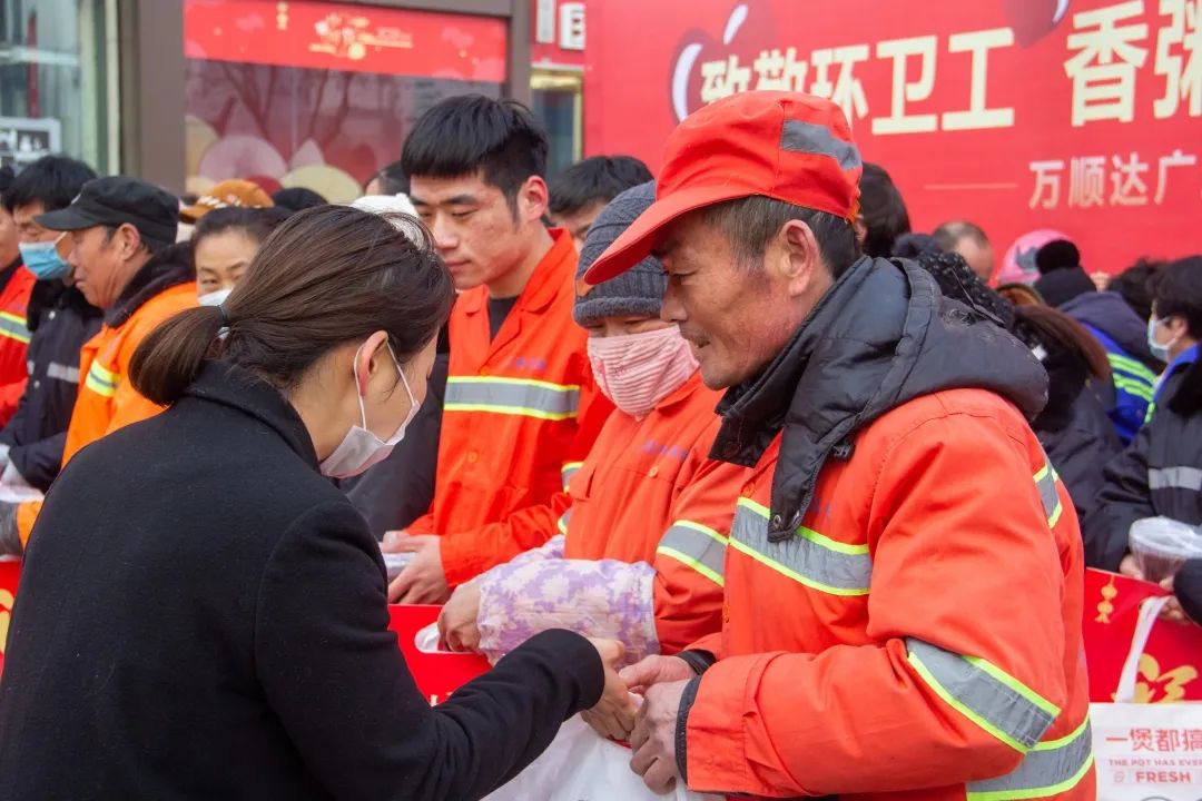 大寒節(jié)氣,當(dāng)我們還在溫暖的被窩里,環(huán)衛(wèi)工人已經(jīng)開始清掃城市街道,公安民警正在值守夜班,一座城市的平安和美麗都離不開他們默默的付出。為了表達(dá)感謝,萬順達(dá)廣場(chǎng)精心熬制了一鍋臘八粥,并準(zhǔn)備了食品、抗疫用品、日用品等,在冬日的寒冷里,給他們送去春天般的溫暖。