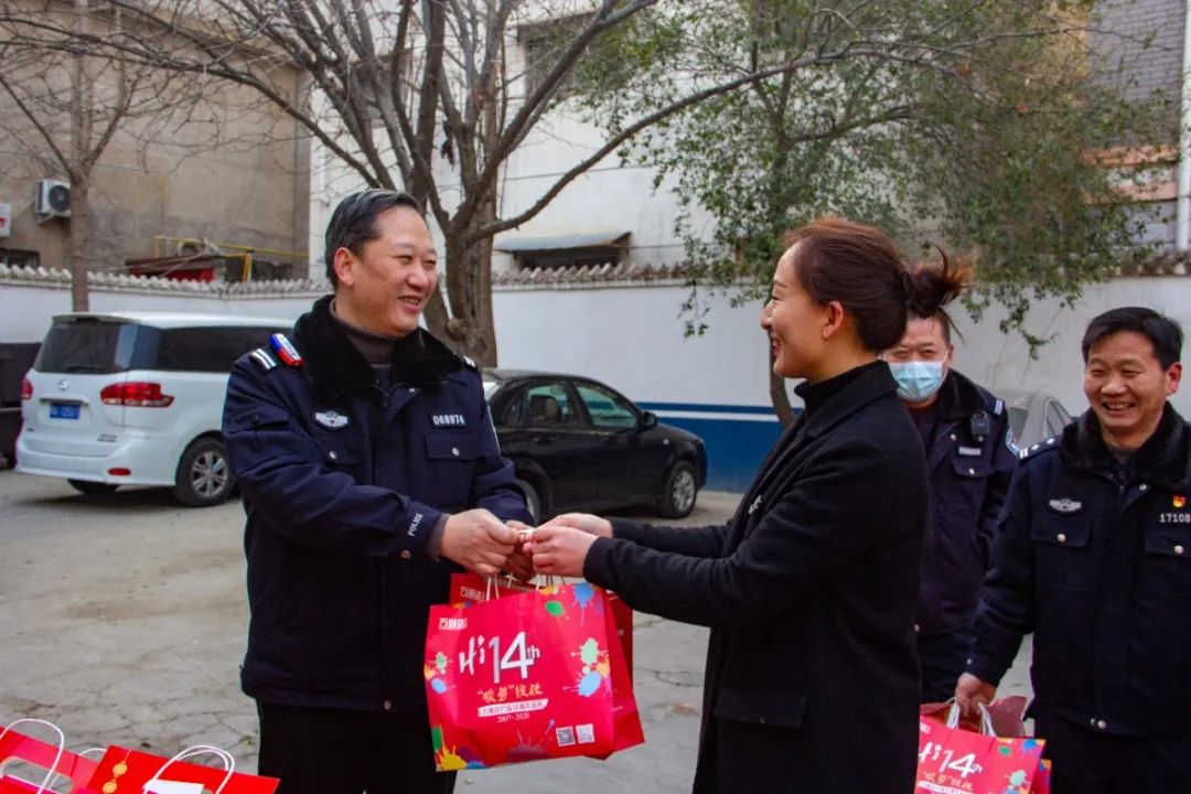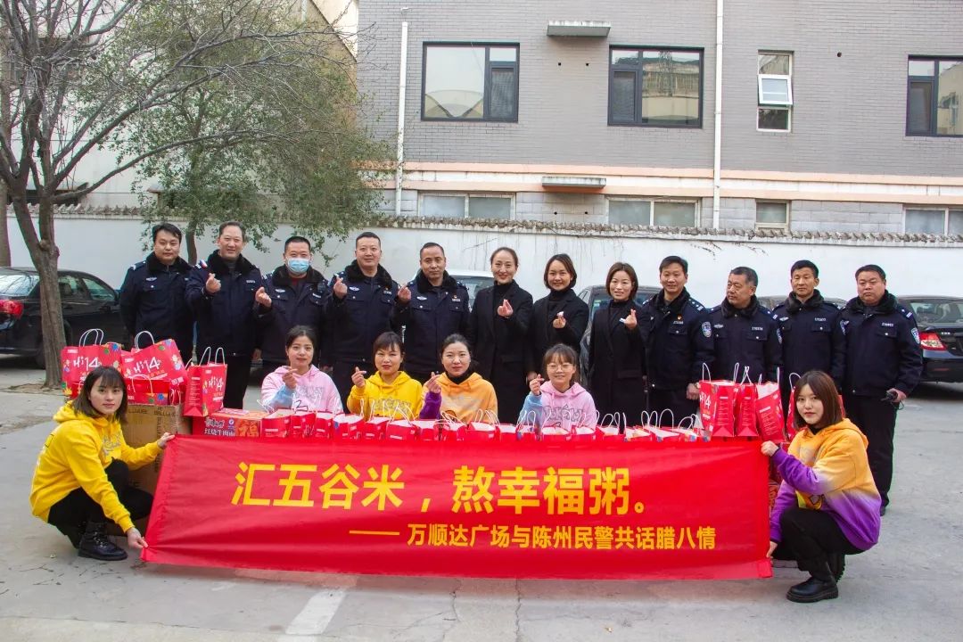 站好城市第一班崗的還有公安民警,為了城市的平安,公安民警常常值守夜班。萬順達(dá)廣場(chǎng)當(dāng)天為周口市公安局川匯分局陳州派出所的民警們送上了臘八祝福,提醒他們?cè)谑刈o(hù)市民平安的同時(shí),也別忘了關(guān)心自己。