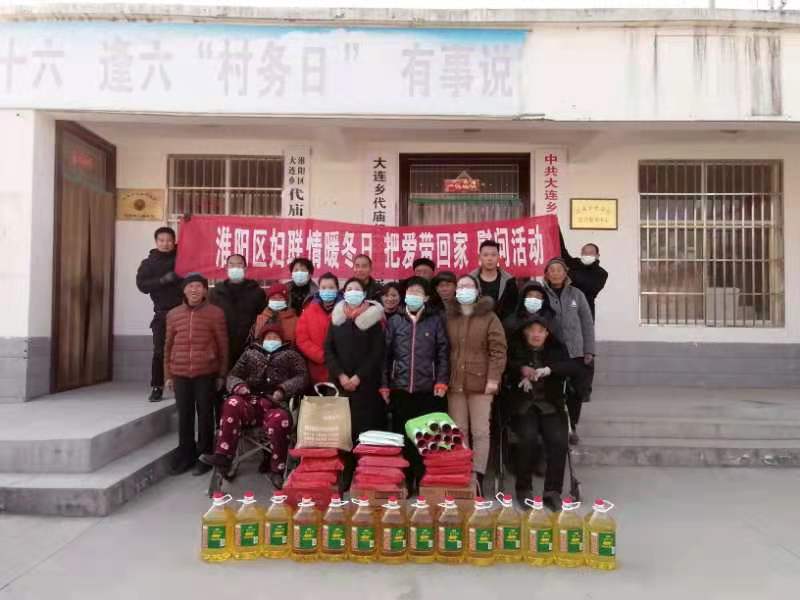 為把省、市婦聯(lián)“關(guān)于做好2021年春節(jié)慰問困難婦女兒童和家庭關(guān)愛幫扶工作的通知”精神落到實(shí)處,2月2日,淮陽區(qū)婦聯(lián)帶著威士德教育、市級巧媳婦就業(yè)創(chuàng)業(yè)示范基地霖海服飾有限公司捐贈(zèng)的愛心物資,先后深入到大連鄉(xiāng)代廟行政村、產(chǎn)業(yè)集聚區(qū)棠棣行政村開展“情暖冬日 把愛帶回家”走訪慰問活動(dòng),為14戶貧困婦女、留守兒童、困難黨員等家庭送去米、面、口罩、春聯(lián)等生活用品,并向他們送上新年的問候和祝福。