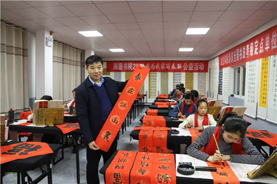 “春聯(lián)是我們中華民族獨(dú)有的文化符號(hào),象征著喜慶,蘊(yùn)含著吉祥。我為我家寫春聯(lián)公益活動(dòng)具有很強(qiáng)的廣泛性、群眾性、公益性,送祝福、亮成績(jī)與弘揚(yáng)傳承中華優(yōu)秀傳統(tǒng)文化相結(jié)合,在學(xué)生心中樹立了文化自信。”陳吳陸欣慰地說。