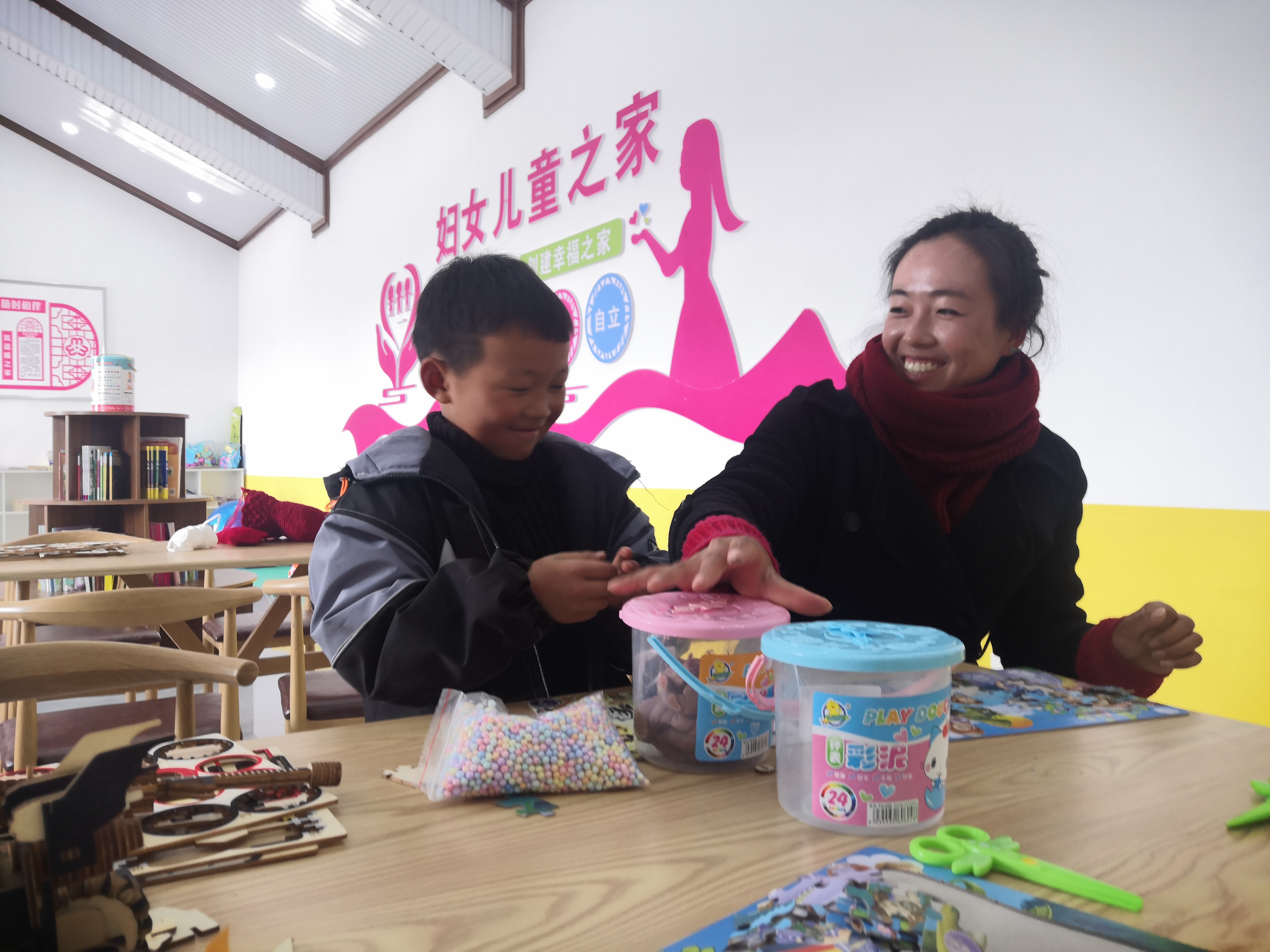“婦女兒童之家”不僅給孩子們提供了一個充滿童趣的場所,也讓媽媽們有了一個學習、交流、充電的陣地。在這里,她們可以利用閑暇時光做手工,通過網絡銷售她們的手工藝術品,“帶娃、顧家、掙錢、學習四不誤”。