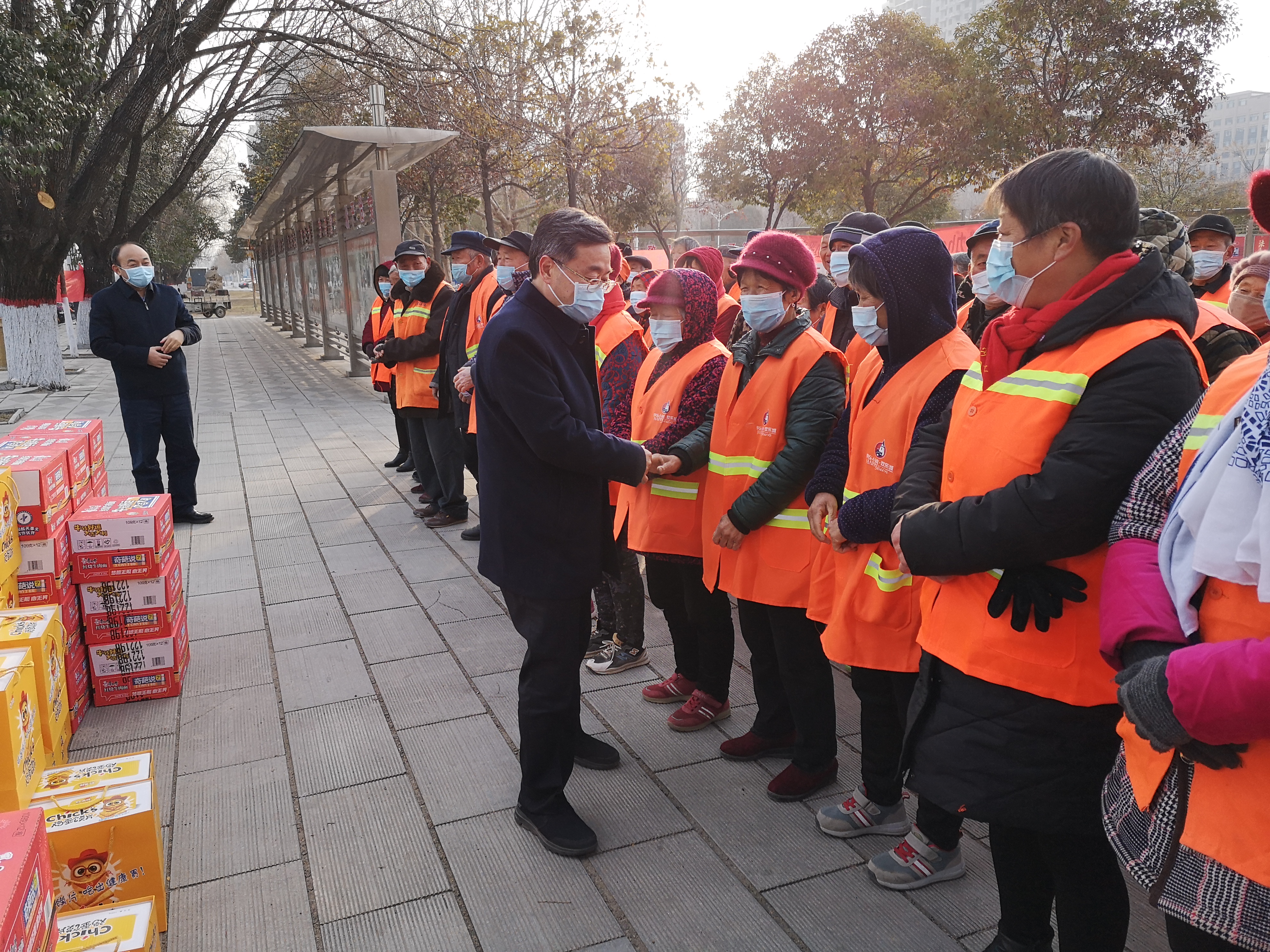 在行政新區(qū)全民健身廣場,皇甫立新、劉國慶同環(huán)衛(wèi)工人們一一握手,并代表縣四個班子向堅守一線的環(huán)衛(wèi)工人致以新春的祝福,對他們在過去一年里付出的辛勤勞動表示衷心感謝?;矢α⑿抡f,一年來,環(huán)衛(wèi)工人們起早貪黑、兢兢業(yè)業(yè),為改善居民生活環(huán)境和提升城市形象付出很多心血和汗水,取得了良好效果,城區(qū)環(huán)境和城市面貌有了很大改善,得到了社會各界的一致好評,希望大家繼續(xù)發(fā)揚愛崗敬業(yè)、無私奉獻的精神,把縣城衛(wèi)生打掃的更加干凈、整潔,為全縣人民歡度春節(jié)創(chuàng)造一個干凈舒適愉快的環(huán)境。