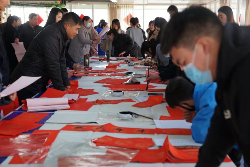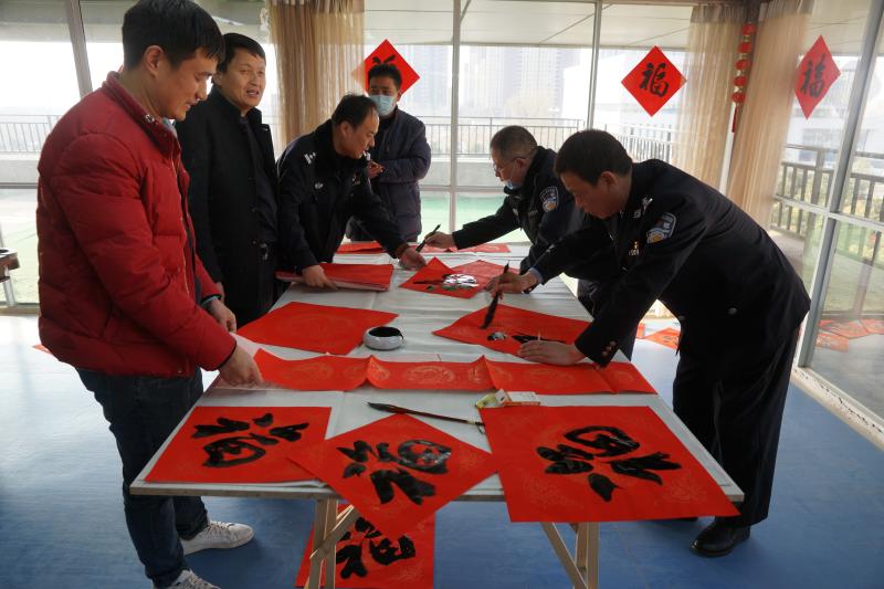 金牛賀歲來祥瑞,翰墨飄香迎新春。為弘揚(yáng)中華傳統(tǒng)文化,落實(shí)“從優(yōu)待警”舉措,傳遞市局黨委的親切慰問和關(guān)心關(guān)懷,豐富警營文化生活,營造歡樂祥和的節(jié)日氛圍,2月9日,項(xiàng)城市公安局在三樓大廳開展書贈(zèng)春聯(lián)活動(dòng),孫沄、閆永紅等5名警營書法家及16名蓮溪書院師生揮毫潑墨,現(xiàn)場(chǎng)為民警、輔警及工作人員義寫春聯(lián)、福字2000余套,受到了廣大民警、輔警的熱烈歡迎和充分好評(píng)。