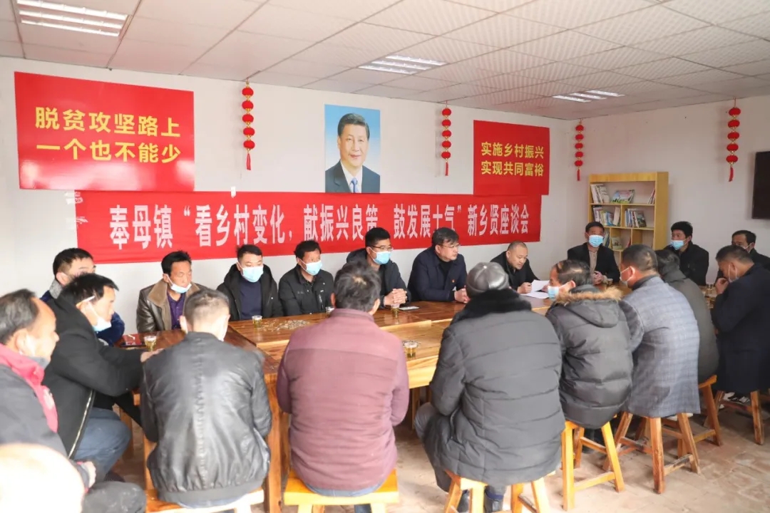 匯聚眾人之力才是發(fā)展之力,凝聚眾人智慧才是最高智慧。春節(jié)之際,奉母鎮(zhèn)黨委為進(jìn)一步調(diào)動(dòng)鄉(xiāng)賢的積極性和創(chuàng)造性,共同探討家鄉(xiāng)的發(fā)展與建設(shè),最大限度贏得鄉(xiāng)賢對(duì)家鄉(xiāng)發(fā)展的支持和反哺,有效推動(dòng)資金回流、項(xiàng)目回歸、信息回傳、人才回鄉(xiāng),集發(fā)展“錦囊妙計(jì)”,匯聚助推鄉(xiāng)村振興的新力量,特意把七二村的“看鄉(xiāng)村變化,獻(xiàn)振興良策,鼓發(fā)展士氣”新鄉(xiāng)賢座談會(huì)會(huì)場布置到“鄉(xiāng)村大食堂”。奉母鎮(zhèn)黨委書記陳鵬、武裝部長胡波濤參加座談會(huì)。陳鵬作了講話。