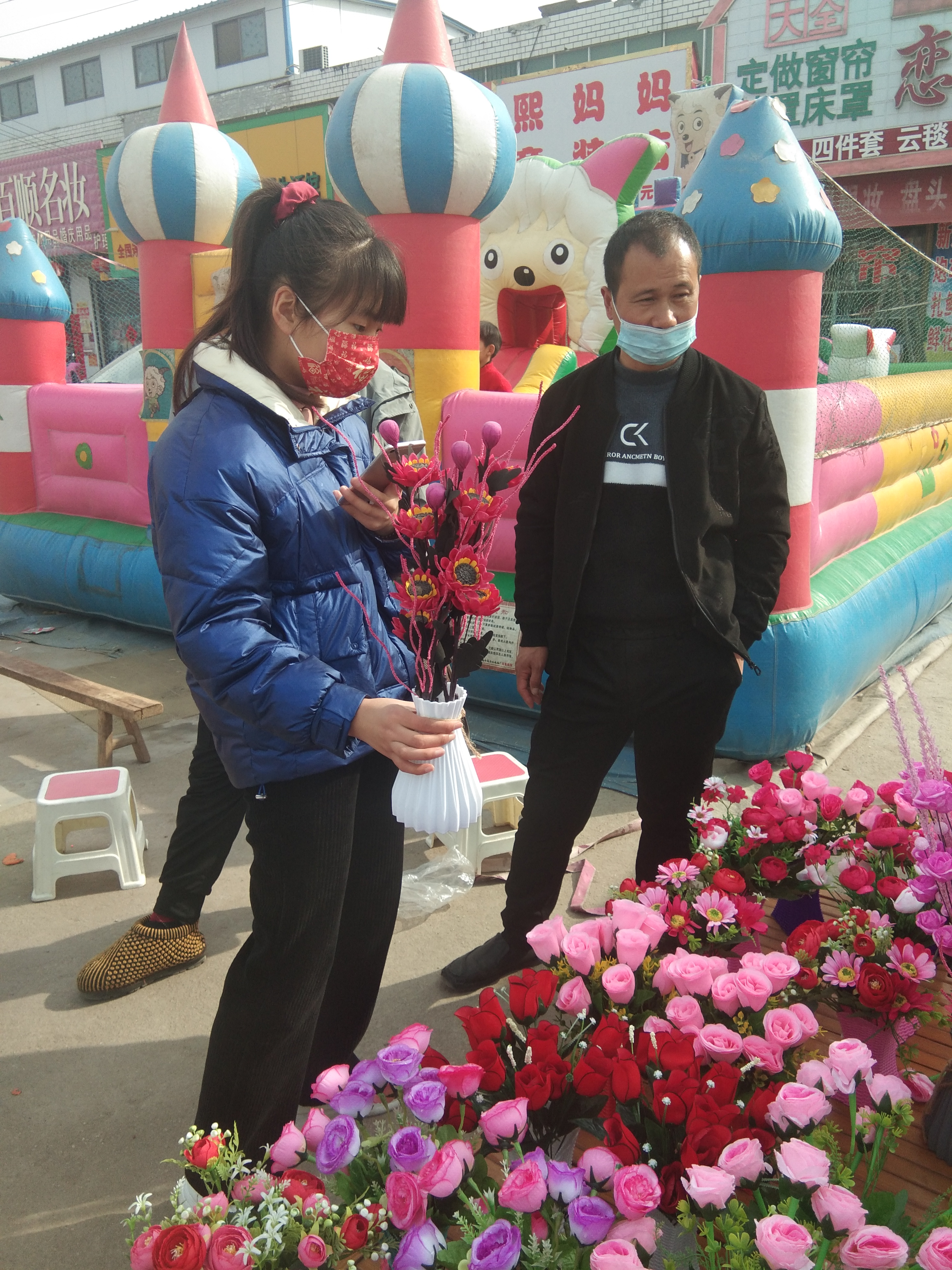 2月10日,在商水縣張莊鄉(xiāng)李寨行政村的商貿(mào)市場里,幾名群眾一邊挑選著年貨一邊互相調(diào)侃著。