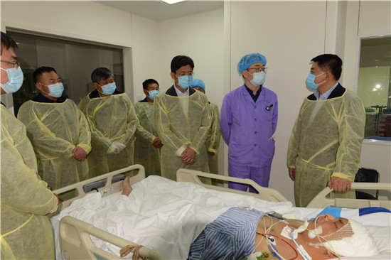 經(jīng)過一段時間的治療,張寧博的身體各項(xiàng)指標(biāo)都明顯好轉(zhuǎn),但尚未脫離危險,仍在醫(yī)院重癥監(jiān)護(hù)室救治。2月18日~19日,省公安廳黨委委員、副廳長、政治部主任高萬象,扶溝縣委書記孫紅偉等先后到鄭州大學(xué)第一附屬醫(yī)院ICU重癥監(jiān)護(hù)室,代表省公安廳黨委和扶溝縣委、縣政府看望慰問張寧博及其家屬。慰問中,他們要求醫(yī)護(hù)人員將生命放在第一位,不惜一切代價,全力救治,精心治療。