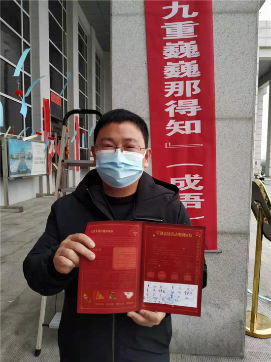燈謎競猜是元宵節(jié)自古以來標配的文娛活動,也是難度較大的文娛項目。燈謎是詩歌的延續(xù)和傳承,也是大眾生活認識大千世界的經驗結晶,體現了中華民族的智慧。由省民協燈謎學委員會、市文化廣電和旅游局、市民間文藝家協會、市消防救援支隊主辦,市博物館、華威民俗文化博物苑、市文物保護中心、市民協燈謎學專委會承辦,市非遺保護中心、川匯區(qū)民協協辦的元宵節(jié)燈謎有獎競猜活動,堪稱是牛年周口元宵節(jié)最牛的文娛活動,位于周口市博物館的主會場和華威民俗文化博物苑的分會場于2月26日上午開幕后,迎來大批謎語愛好者,特別是周口市博物館的主會場,成為今年元宵節(jié)文娛活動的主陣地,市民們參觀文物展、牛年牛圖騰文化圖片展、書畫展的同時,在琳瑯滿目的燈謎現場又能享受傳統文化的洗禮。正月十五當天,有數千人驅車從四面八方到市博物館猜謎、逛謎會,市博物館前的燈謎會場人頭攢動,熱鬧非凡。