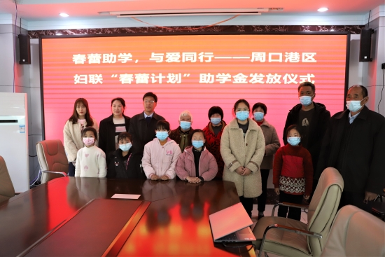 3月4日下午,周口港區(qū)婦聯(lián)舉辦“春蕾計劃”助學(xué)金發(fā)放儀式。港區(qū)黨委委員張東立出席儀式并講話。港區(qū)婦聯(lián)、港區(qū)文教衛(wèi)計生科技辦和相關(guān)學(xué)校負責(zé)同志參加助學(xué)金發(fā)放儀式。