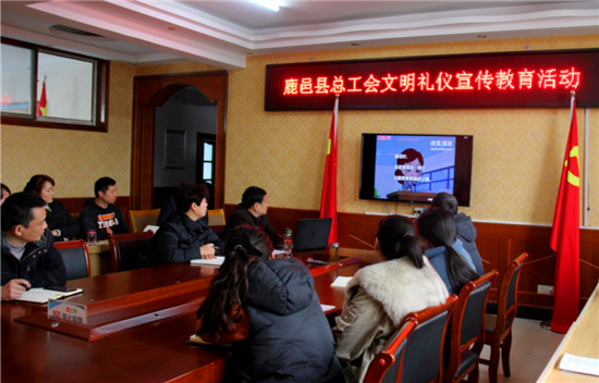 鹿邑縣總工會全體人員集中觀看了《常州市市級機關(guān)工作人員文明禮儀宣傳教育片》。從接聽電話、公務(wù)接待、參加會議、乘坐電梯、公共場所、文明觀演、文明出行等詳細介紹了機關(guān)工作人員應(yīng)做到的禮儀規(guī)范,提醒大家各項禮儀中的注意事項。