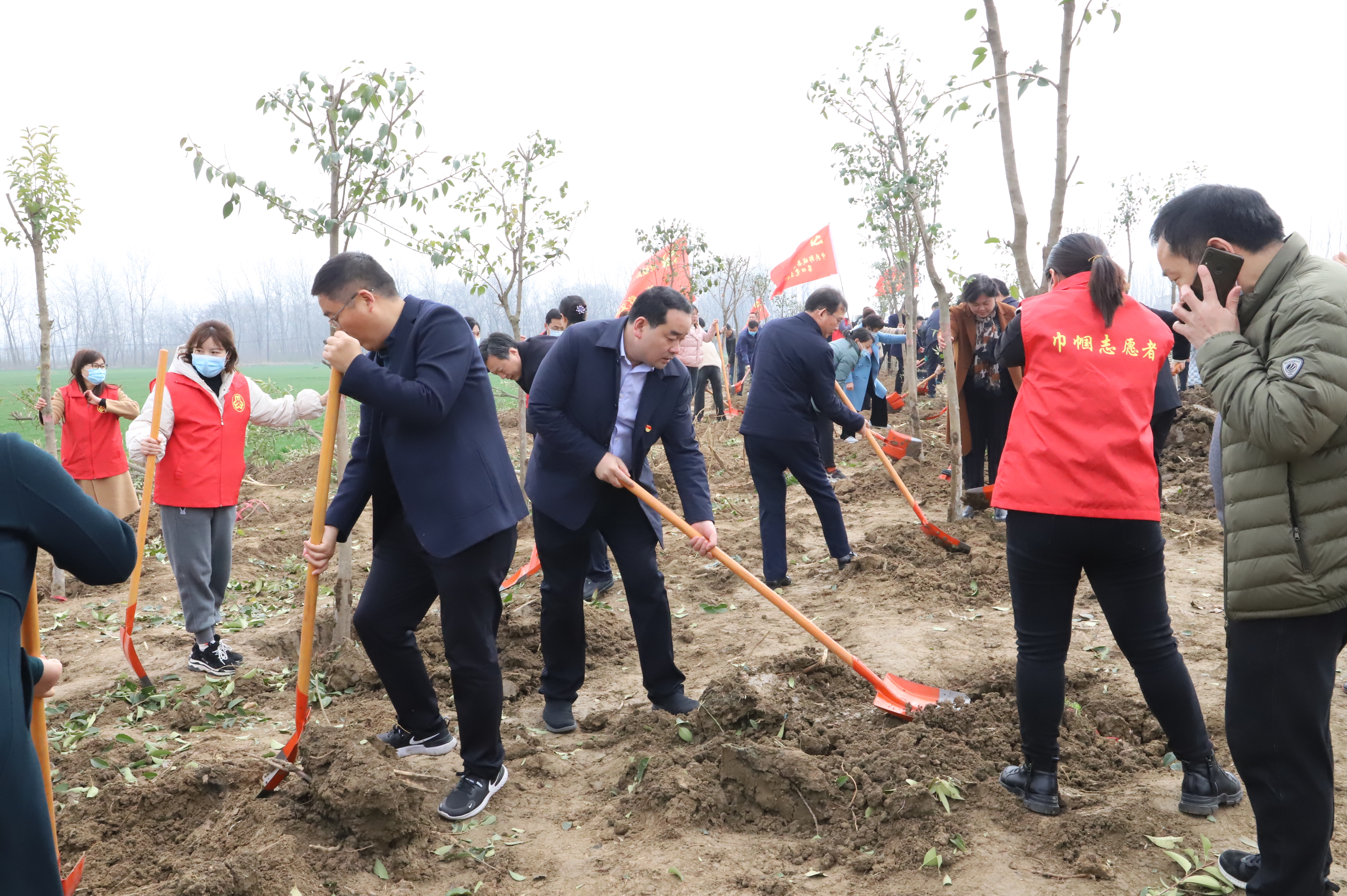 草長鶯飛,春回大地。3月12日,在第43個植樹節(jié)之際,全市掀起義務(wù)植樹熱潮,黨員干部、志愿者、市民踴躍參與義務(wù)植樹活動。扶正樹苗、揮鍬培土、分層踩實(shí)、堆起圍堰、提水澆灌,認(rèn)真地完成著每一道工序,栽下了一棵棵樹苗,為改善生態(tài)環(huán)境、綠化美麗家園種下了一棵棵綠色的希望。圖為鄲城縣義務(wù)植樹現(xiàn)場。