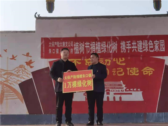 “這楸樹作為行道綠化,真不賴,現(xiàn)在栽上澆點水就能活……”在太康縣朱口鎮(zhèn)周寨村參加捐贈儀式的洼陳村村民代表張紅飛說。3月12日,植樹節(jié)當日,太康縣朱口鎮(zhèn)與太平洋保險財產(chǎn)保險公司周口支公司在周寨村舉行了“植樹節(jié)捐植綠化樹,攜手共建綠色家園活動”,太平洋保險財產(chǎn)保險公司為朱口鎮(zhèn)捐贈綠化樹10000棵,助力朱口鎮(zhèn)建設綠色家園。太平洋保險公司周口支公司總監(jiān)豆威、總經(jīng)理趙磊和鎮(zhèn)長江海洋等出席了會議,全鎮(zhèn)52個村黨支部書記、100多名群眾代表參加了會議。
