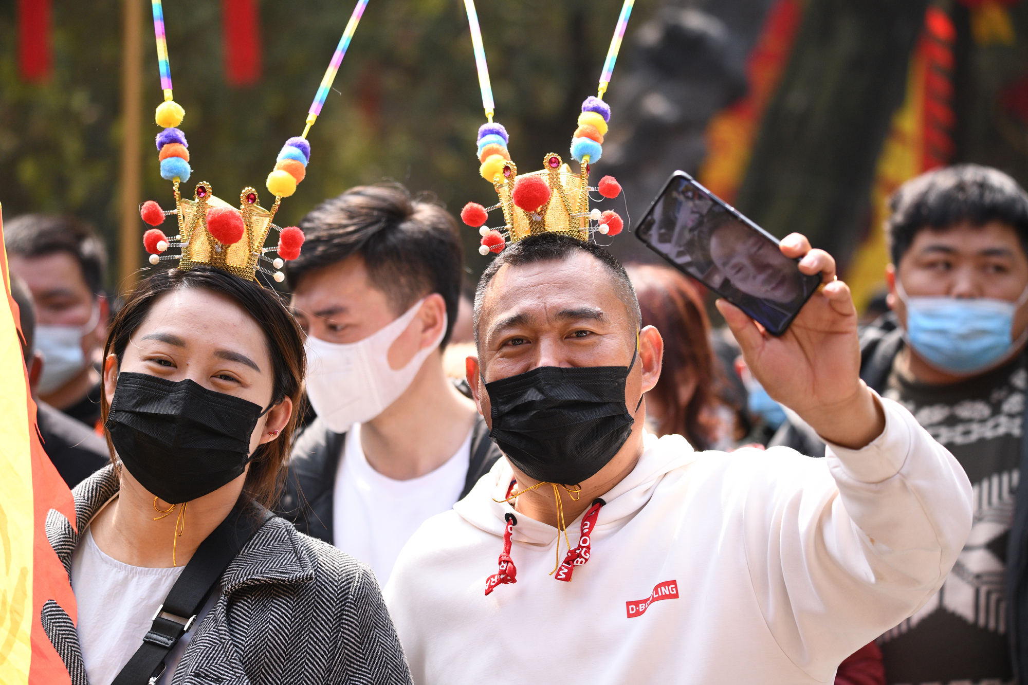 帥氣游客逛廟會不忘分享開心