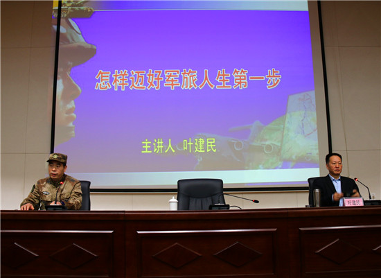 授課中,葉建民教授結(jié)合當(dāng)前國際國內(nèi)形勢和自身經(jīng)歷,深刻剖析了強國強軍的重要意義。為即將參軍入伍的“準(zhǔn)新兵”,如何端正入伍動機、適應(yīng)部隊生活、弘揚尚武精神、立志軍營建功立業(yè),指明了前進(jìn)方向。葉教授整個授課見解獨到、分析透徹,語言精彩、內(nèi)涵深刻,讓人深受啟發(fā)、獲益匪淺,授課過程中多次爆發(fā)熱烈的掌聲。