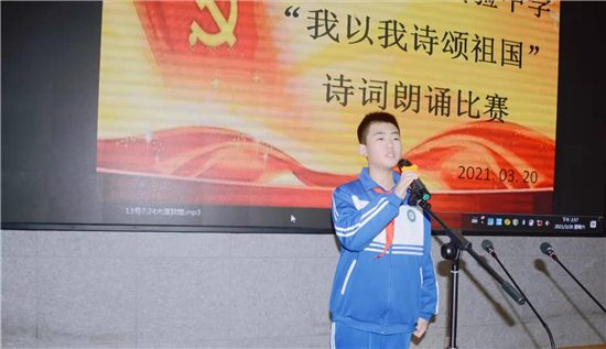“我是你掛著眼淚的笑渦/我是新刷出的雪白的起跑線/是緋紅的黎明/正在噴薄/——祖國啊!”一句句飽含深情的朗誦,一陣陣熱情如潮的掌聲。3月20日下午,鄲城縣第二實(shí)驗(yàn)中學(xué)“我以我詩頌祖國”學(xué)生愛國詩詞朗誦比賽熱烈舉行。
