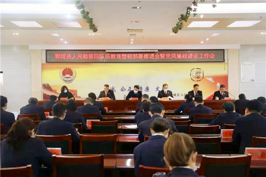 3月11日,鄲城縣人民檢察院召開隊伍教育整頓部署推進(jìn)會暨黨風(fēng)廉政建設(shè)工作會。會議深入學(xué)習(xí)貫徹習(xí)近平新時代中國特色社會主義思想,特別是習(xí)近平法治思想,全面貫徹落實(shí)全國、全省、全市、全縣政法隊伍教育整頓動員部署會和高檢院、省院、市院檢察隊伍教育整頓動員部署會暨黨風(fēng)廉政建設(shè)會議精神??偨Y(jié)2020年縣檢察院全面從嚴(yán)管黨治檢工作,分析新形勢新任務(wù),對縣檢察院檢察隊伍教育整頓和今年的黨風(fēng)廉政建設(shè)工作統(tǒng)籌作出安排部署。