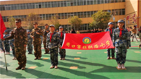 3月25日,周口紡織路小學(xué)學(xué)生正在參加“國(guó)防教育進(jìn)校園”主題活動(dòng),一天下來(lái),站軍姿、學(xué)旗語(yǔ)、體驗(yàn)迫機(jī)炮、觀看戰(zhàn)術(shù)表演和戰(zhàn)爭(zhēng)情景模擬等,讓孩子們懂得“祖國(guó)神圣不可侵犯”,愛(ài)軍報(bào)國(guó)意識(shí)大大增強(qiáng)。