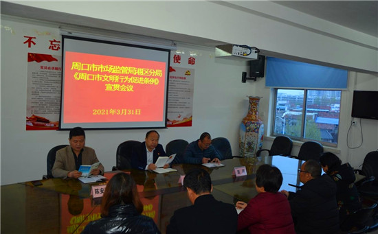 3月31日,周口市市場(chǎng)監(jiān)督管理局港區(qū)分局召開《周口市文明行為促進(jìn)條例》宣貫會(huì)議。局長(zhǎng)崔健就如何學(xué)習(xí)、遵守、貫徹、宣傳好《周口市文明行為促進(jìn)條例》向全局同志提出具體要求。