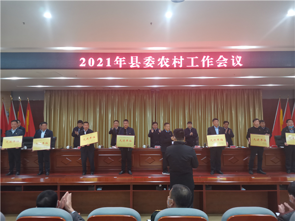 郭俊濤就貫徹落實(shí)會(huì)議精神及下一步農(nóng)村工作進(jìn)行具體安排部署??h委副書記許四軍宣讀了縣委、縣政府關(guān)于表揚(yáng)2020年度農(nóng)業(yè)農(nóng)村工作先進(jìn)單位、先進(jìn)個(gè)人的通報(bào)。會(huì)議還對(duì)受表彰的先進(jìn)單位代表進(jìn)行了頒獎(jiǎng)。