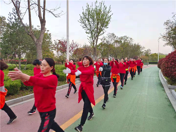 “一!二!三!四!”4月4日清晨,周口公園內(nèi)一支健步走愛好者身著紅色衛(wèi)衣,在潦亮的口號聲中,邁著嬌健的步伐,在鮮花綠葉中行進,撒下一路青春的氣息。②7