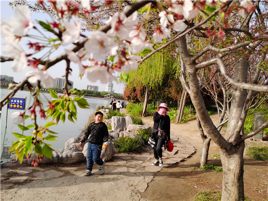 最美四月天,踏青正當時。清明節(jié)期間,周口公園、植物園里金黃的連翹、婀娜多姿的美人梅、鵝黃嫩綠的新柳、盛開的桃花……一片生機盎然、春意融融的景象,市民紛紛來到戶外,沐浴春光,擁抱大自然,悠閑享受假日時光。②9