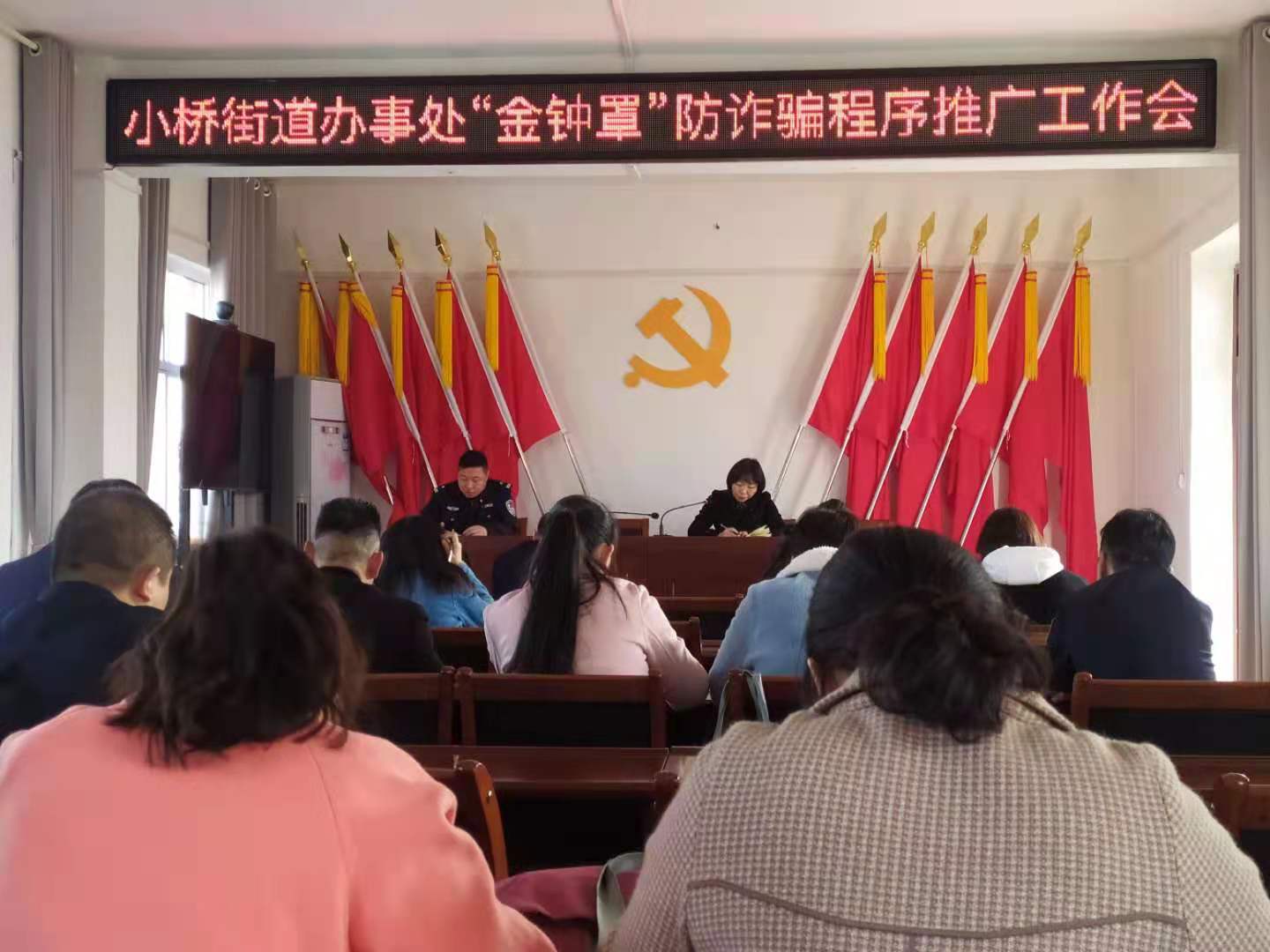 堅持黨建引領,高起點安排部署。辦事處堅持以黨建統(tǒng)領為中心,第一時間成立了防范詐騙宣傳工作領導小組,立即召開了全辦推廣“金鐘罩”程序專題會,安排部署宣傳推廣工作。同時,每周召開“金鐘罩”放詐騙程序推廣小結會,對各社區(qū)推廣注冊人數(shù)情況進行日督查周統(tǒng)計通報,對落后社區(qū)進行通報批評。堅持四級聯(lián)動,高規(guī)格落實責任。辦事處將下轄9個社區(qū)根據(jù)實際情況劃分為30個網(wǎng)格,形成了“科級干部—派出所民警—社區(qū)干部—志愿者服務隊”四位一體的小橋辦“金鐘罩”防詐騙推廣小組,由綜治中心牽頭搭線,各社區(qū)干部、黨員志愿者和轄區(qū)派出所民警結成宣傳對子,挨家挨戶上門宣傳,夯實責任,主動出擊,形成合力,成效明顯。