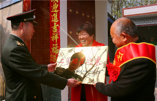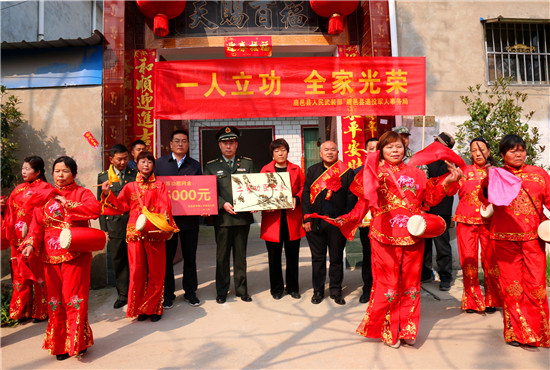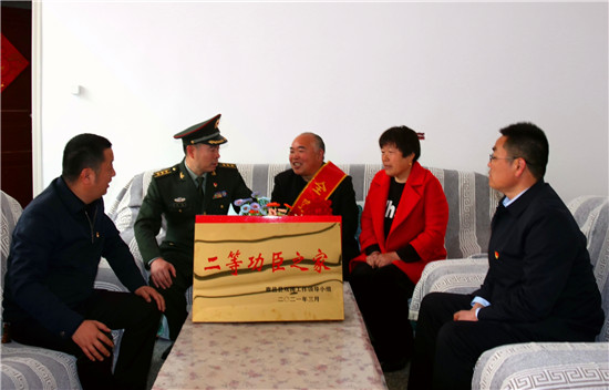 李峰說:“一張立功喜報,不僅是軍人榮譽(yù)的象征、成長進(jìn)步的見證,也承載著軍人家屬的期盼與慰藉。功臣是實(shí)現(xiàn)強(qiáng)軍興軍目標(biāo)的尖兵,他們在部隊建功立業(yè),我們力所能及服務(wù)保障好他們的家人,積極在全社會營造起‘功臣受愛戴、軍人受尊崇、軍屬受尊敬’的氛圍?!睘榇?,鹿邑縣人武部積極構(gòu)建軍人軍屬榮譽(yù)體系,每逢重大節(jié)日,都要協(xié)調(diào)地方黨委、政府開展為現(xiàn)役軍人和軍屬送喜報,掛功臣匾、光榮牌等活動,通過活動激勵等形式,讓軍人軍屬享有更多的“專屬榮光”,努力營造“一人參軍,全家光榮;一人立功,全村光榮”的濃厚氛圍,更加堅定了軍屬支持子女獻(xiàn)身國防的決心,進(jìn)一步激發(fā)了鹿邑籍官兵獻(xiàn)身軍營、報效祖國的積極性。②9